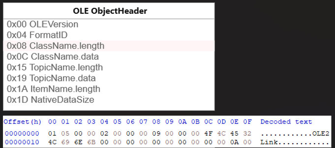 This OLE stream "instructs" the COM interface to load and launch the malicious hyperlink. Additionally, to the OLE stream, the LinkInfo stream also contains data regarding the hyperlink and it to needs to be modified.