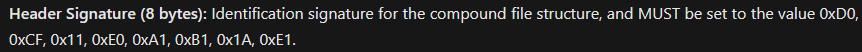 To understand what all these hex numerals mean we must first understand what are OLE objects and in format what they are stored. For that we'll use Wikipedia –