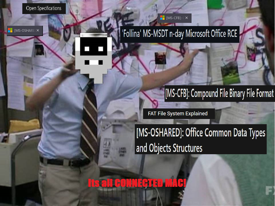 This prompted me, to learn how OLE Objects are stored and understand how they work so I could automate their creation. One might ask why am I doing this? As generating an RTF loaded with Follina is easy to do, just regenerate it with word? Well… I am annoyed by the Github issue and simply curious. Anyways strap your belts and take your sanity pills because we are about to deep dive into some DEEP Microsoft RFCs and Specifications!